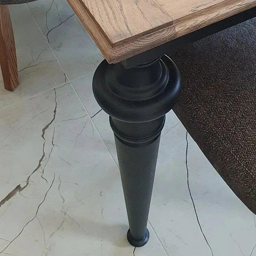Еще одна бонусная задача, которую решили мастера компании «Вернисаж» – это корректировка высоты стола. При заказе стола Екатерина просила производителя сделать его выше стандартных размеров, так как все члены семьи довольно высокого роста. Но по факту сидеть за таким столом оказалось неудобно, и клиентка спросила, сможем ли мы чем-то помочь.