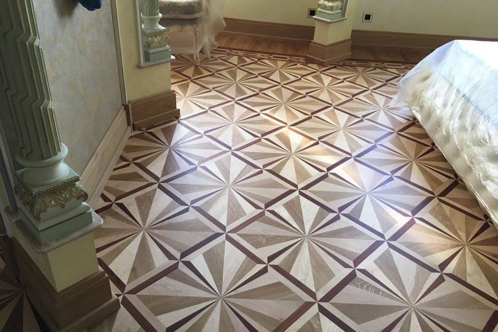 Сочетание элементов художественного украшения с классическим («палуба», «елка», «плетенка», «шахматные квадраты» и др.) или модульным замощением, оптимизация методов укладки и оптимальный выбор пород позволяют регулировать цену укладки паркета в широких пределах.