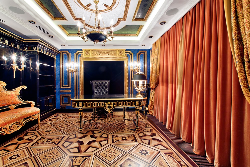 Художественный паркет может иметь любую стилистику – как классическую, так и авангардную, все зависит от того, в какое помещение необходимо его вписать. В наше время художественные паркетные полы можно встретить в частных интерьерах, правительственных и государственных учреждениях, посольствах, театрах, галереях – все зависит от запросов, вкусов и, простите за подробность, финансовых возможностей. Во многих указанных помещениях, расположенных в домах дореволюционной постройки, такие полы лежат уже многие годы, и периодически мастера выполняют реставрацию художественного паркета, чтобы еще надолго сохранить их великолепие.