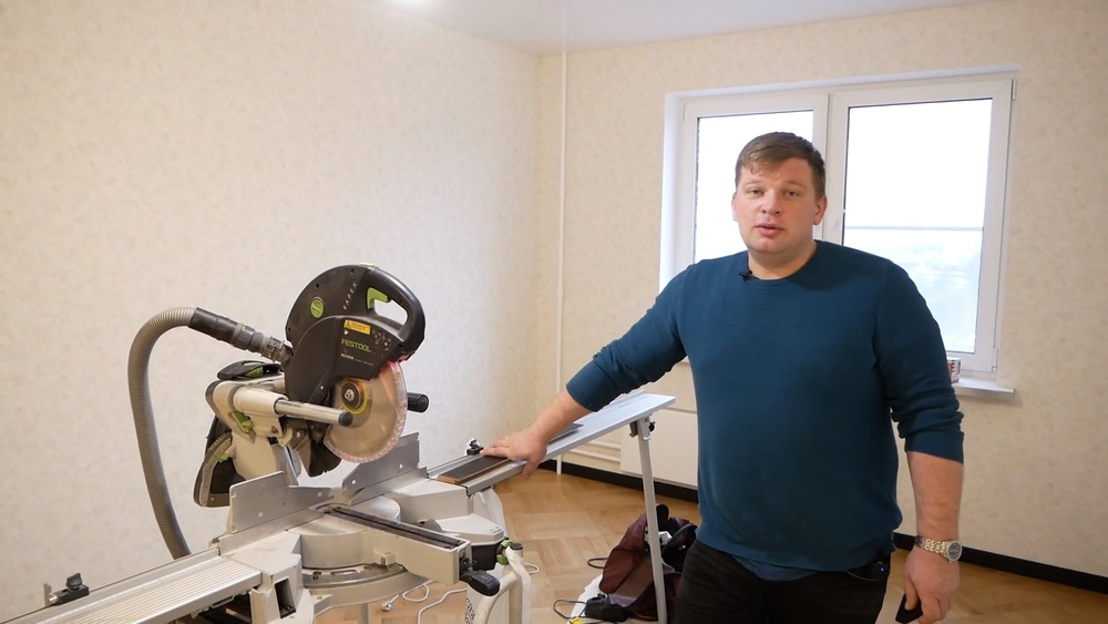 Второй момент – это стыковка палок между собой. Чтобы положить цельный плинтус на всю длинную стену от наличника до угла, нужен четырехметровый плинтус. Разумеется, у нас такого нет. Мы обычно стыкуем палки под 45 градусов, запиливая одну к другой, так у нас не будет явного стыка по прямой. Если взять 2 плинтуса с обычным ровным срезом и поставить их друг к другу, то будет четкая прямая линия, которая будет визуально очень заметна. Запиливая под каким-то определенным углом, либо 45, либо 30 градусов, мы этот стык скрываем. Причем, можно расположить его таким образом, что его практически не будет видно. На прямом плинтусе этот стык заметен, но если у вас какой-то плинтус с фигурой, то чем сложнее фигура, тем меньше этот стык будет виден. Соответственно, прикрутив его на саморезы и заделав этот стык специальным воском, мы сделаем его практически невидным.
