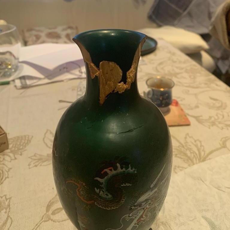 А вот еще один интересный случай из практики, на этот раз реставрация не паркета, а деревянной вазы, которая пострадала от домашнего питомца – ее разбил кот. Сама по себе ваза не является дорогой, но для ее владелицы это памятная вещь, которую хотелось восстановить.