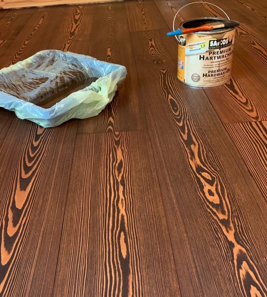 Первая наиболее часто встречающая ошибка заключается в неправильном методе нанесения паркетного масла с твердым воском. Как мы знаем, твердые воски – это воски карнаубы и канделилы, самые тугоплавкие воски из натуральных растительных, и ни в коем случае не пчелиные воски, которые часто называют твердыми, хотя по факту это мягкий воск.