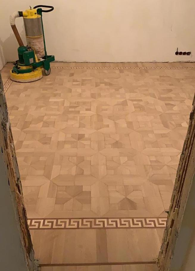 При осмотре перед выполнением отделочных работ мы проверяем общее состояние паркета: как он лежит, есть ли какие-то дефектные места, требуется ли замена отдельных элементов, требуются ли инъекции для укрепления планок. Также мы замеряем метраж, чтобы оценивать расход материалов. Понимаем задачу, показываем заказчику образцы оттенков покрытий, обсуждаем процесс выполнения паркетных работ, какие-то дополнительные работы (например, укрытие стен пленкой) и т.д. Далее согласовываем смету, дату начала работ и сроки их выполнения.