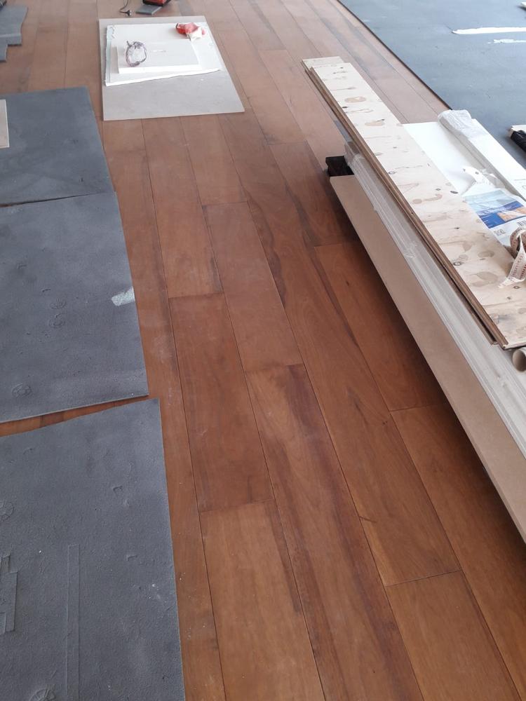 На объекте выполнена укладка паркета, а именно доски из американского ореха, а также выполнена работа по шлифовке паркета и покрытию. Для покрытия была выбрана удачная комбинация – применение спиртового грунтовочного лака Berger UniQuick Primer и двухкомпонентного лака Berger Ceramic Star.
