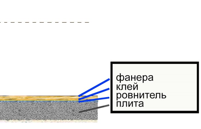 Данное сочетание используется при работах по укладке паркетной доски на теплые полы или при нехватке высоты для укладки фанеры.