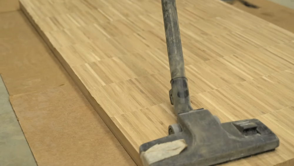 После обеспыливания я протираю поверхность специальной салфеткой, чтобы собрать остаточную древесную «пыльцу» от шлифовки древесины.