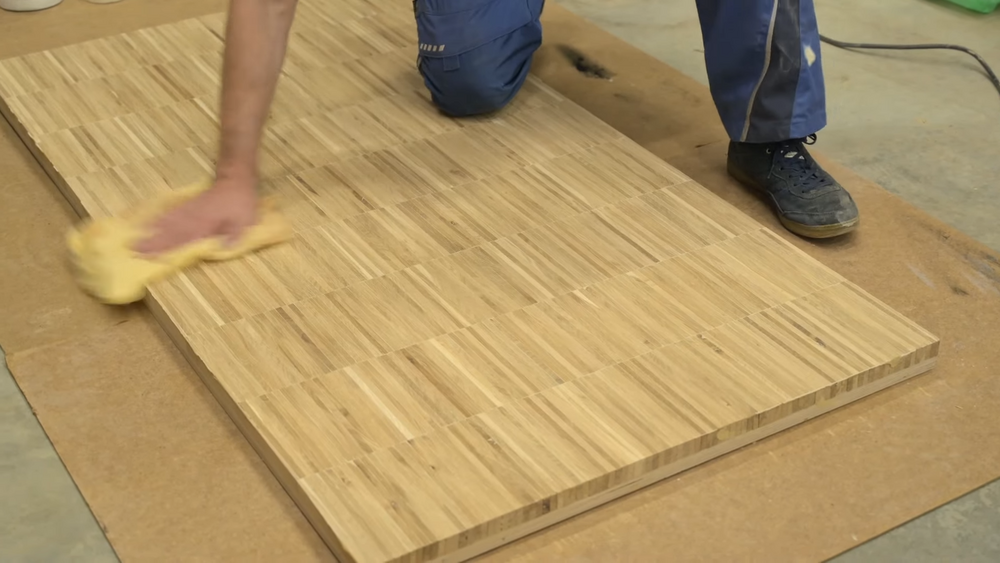 Цветное масло без воска мы проверяем на высыхание тряпкой, масло-воск нужно проверять просто рукой – оно либо высохло, либо не высохло. Вы трогаете рукой: если не липнет везде по всей поверхности, значит масло высохло. По нашему опыту Hard Oil всегда высыхает за ночь.