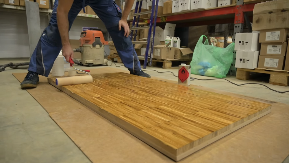 - На обычных традиционных породах дерева (например, дуб, как в нашем случае) достаточно нанести масло в 2 слоя.