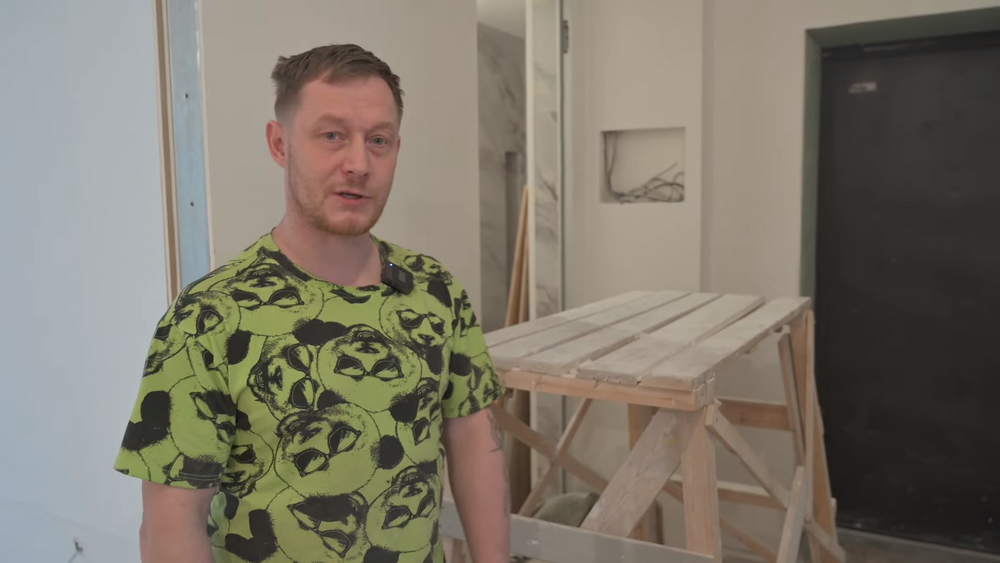 Вторая наша боль – это некачественно вкрученные саморезы. Почему некачественно? Потому что шляпки торчат. После всех этих работ нам необходимо отшлифовать фанеру, а эти шляпки мало того, что убьют абразив очень быстро, также есть большая вероятность убить барабан на нашу шлифовальную машину Hummel, а барабан стоит больше 60 тысяч рублей. Мы, как профессионалы, все-таки сначала зенкуем отверстия, потом вкручиваем саморезы, чтобы шляпки саморезов были утоплены. Одна из бед человечества – это его забывчивость. Судя по всему, на этом объекте ребята крутили-крутили саморезы, потом, наверное, что-то меняли, выкрутили саморезами, вытащили лист, где-то закрутили, а где-то забыли.
