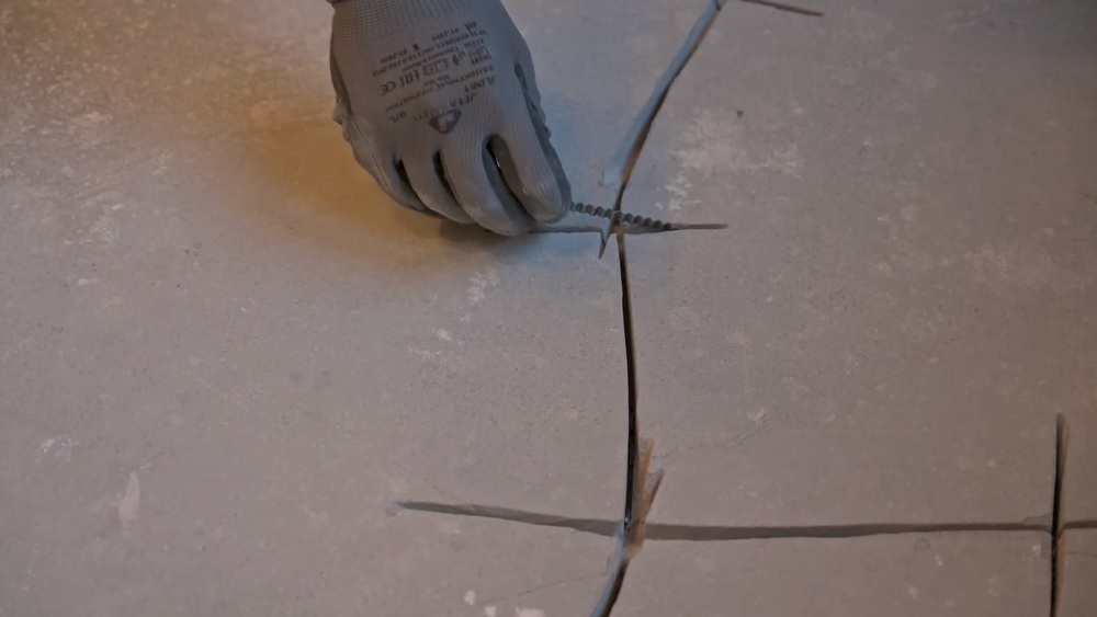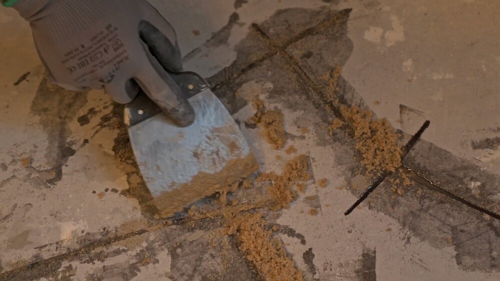 После осмотра объекта вместе с клиентом приняли решение сделать ремонт стяжки с удалением трещин, так как демонтаж поврежденной и заливка новой стяжки будет стоить гораздо дороже ремонта.