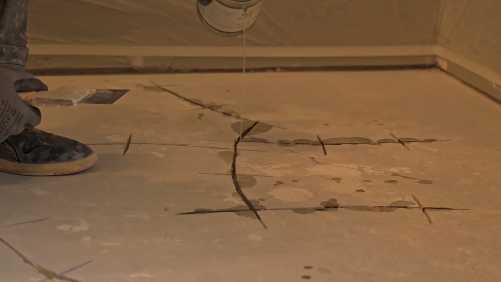 - Затем смешивал 2-компонентный ремонтный состав на основе высококачественных эпоксидных смол и заливал его в трещины.