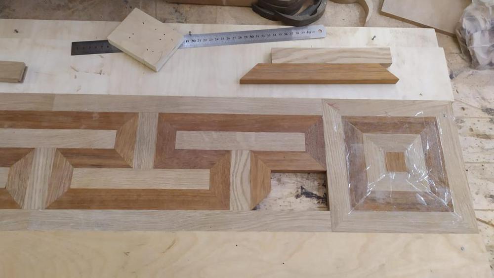 Один из случаев – когда один из наших партнеров (тоже, кстати, мастер по паркету), выйдя на объект, обнаружил, что была затоплена часть пола, где много лет назад был уложен фриз рисунком «меандр», и встала задача изготовить новый фрагмент такого пола. Мы его попросили сделать как можно больше фотографий, снять необходимые нам размеры деталей, после чего Алексей спроектировал все необходимые элементы для изготовления фриза, далее было запущено производство и сделаны все паркетные плашки. После этого довольный партнер прислал фотографии, что он поменял фрагмент пола, сделал полную перешлифовку и успешно сдал объект.
