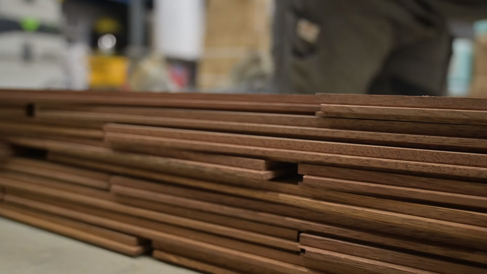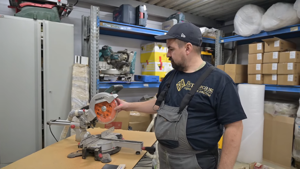 Для распиливания плашек мы используем обычную торцовочную пилу. Самое главное – использовать хороший диск, чтобы он всегда был острый, чтобы не горел край. Также используем пылеотведение, хотя на 100% сделать работу без пыли невозможно.