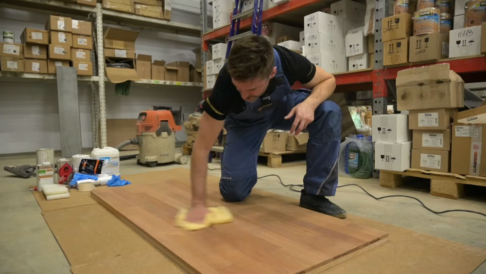 Сегодня мы покажем подготовку очередных щитов, сделанных из штучного паркета породы мербау. Обычно мы собираем дубовые щиты и на них показываем разные покрытия – масла, масло-воски, лаки. Мербау – достаточно распространенная порода, у многих она на объектах лежит уже давно, кто-то и сейчас укладывает такой паркет.