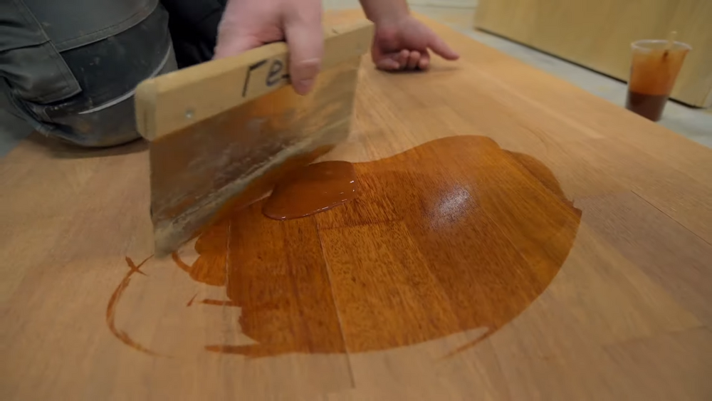 После окончания сборки щита из мербау, нужно выполнить шлифовку и шпатлевку.