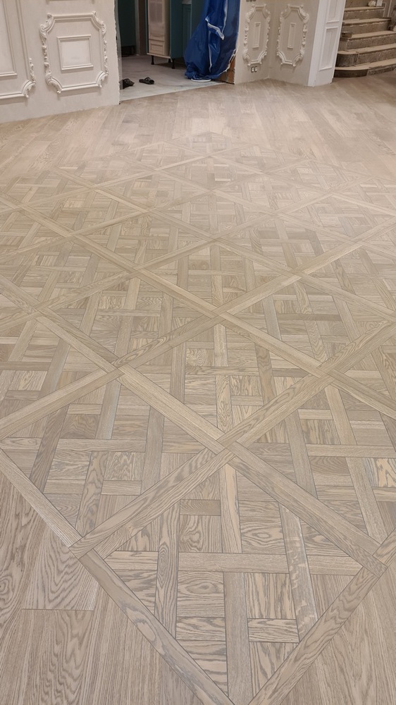 Не так давно мы подробно рассказывали вам о процессе подготовки к укладке паркета – речь шла об одном из наших крупных объектов в Москве в жилом массиве «Новые Сады». Здесь мы работали в двухэтажном частном доме общей площадью порядка 300 квадратных метров, и, разумеется, укладку паркета мы выполняли во всех основных помещениях дома. Расскажем об этом подробнее!