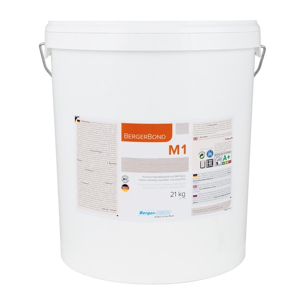 Огромное преимущество Berger Bond M1S – то, что при попадании на лицевую поверхность паркета с заводским покрытием (заводской лак или масло УФ-отверждения) даже после полного его высыхания он легко удаляется без применения специальных средств, не оставляя пятен, что совершенно исключает вероятность ошибки при работе даже не очень квалифицированного мастера.