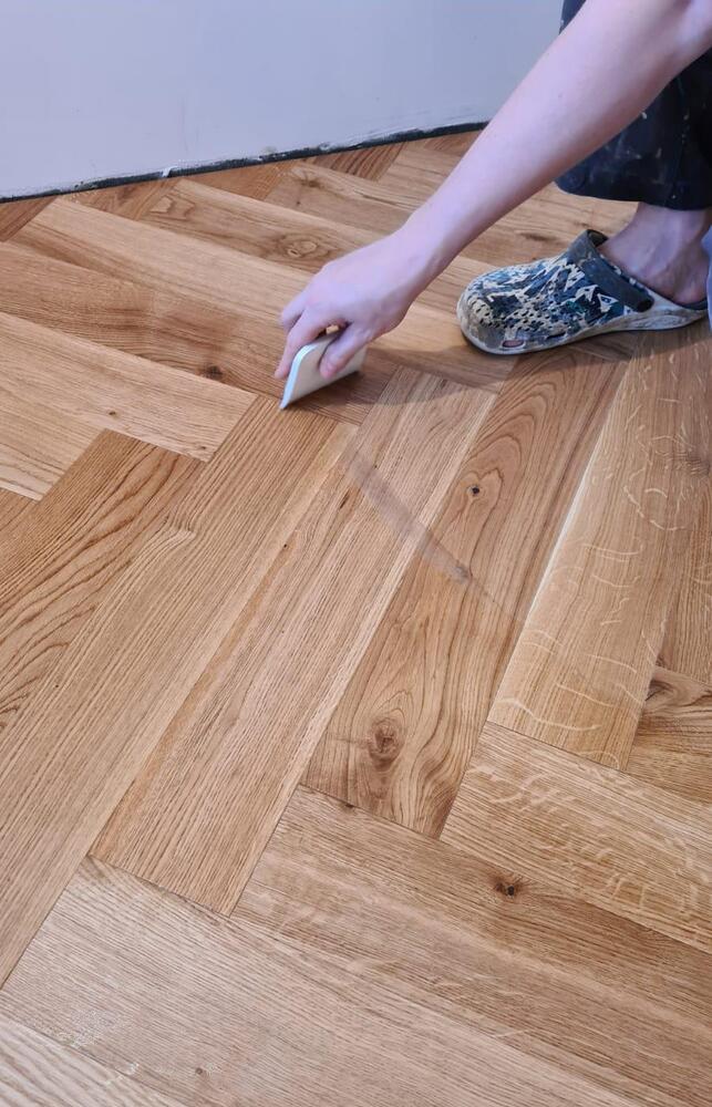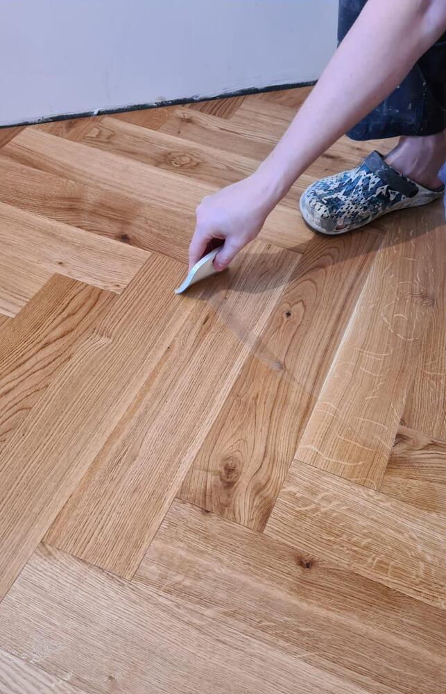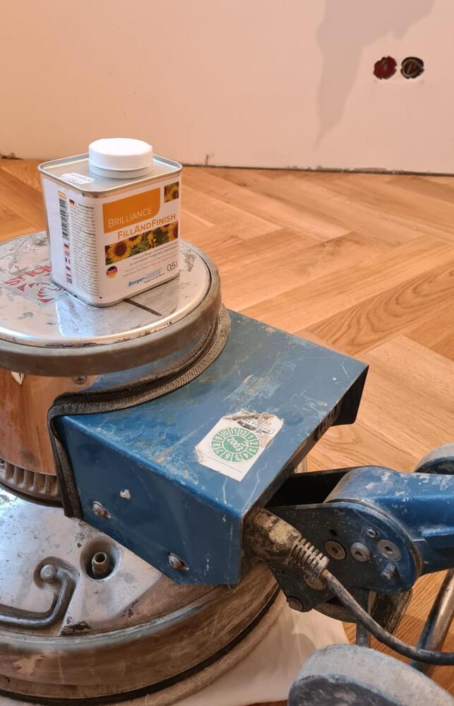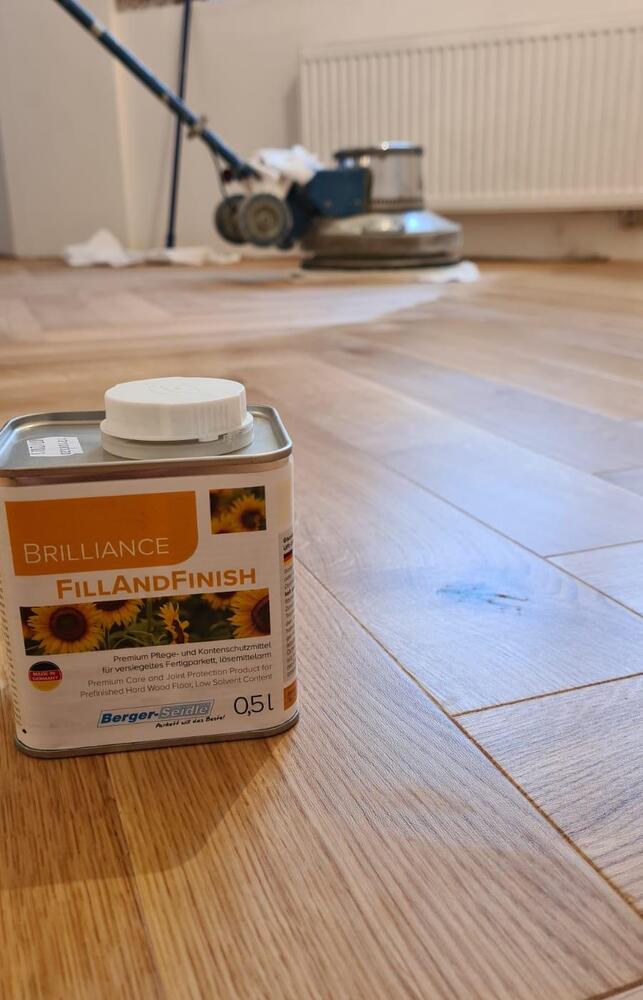 Применять средство Fill-and-Finish лучше всего непосредственно после укладки паркета или ламината, поэтому мы включаем его в первичный уход за паркетом на объектах клиентов.