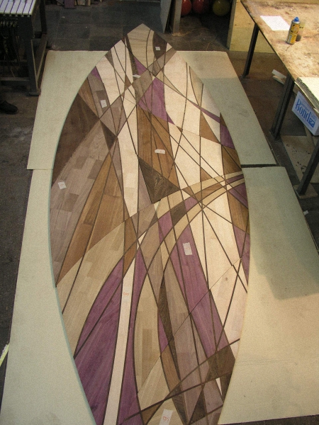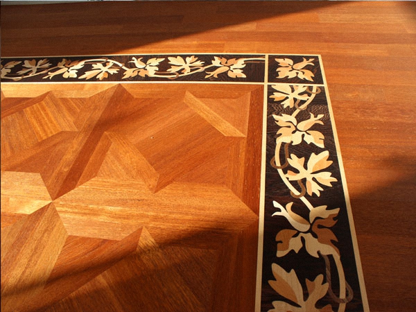 Элементы рисунков в паркетных полах, прямоугольные и криволинейные, изготавливаются на всю глубину или на глубину слоя износа в технике маркетри, чтобы обеспечить долгую жизнь паркетному полу. В самое последнее время появились образчики паркетных модулей – декоров на основе паркетной доски или инженерной доски с лицевым слоем 4-6 мм и различными вариантами классического и художественного замощения.