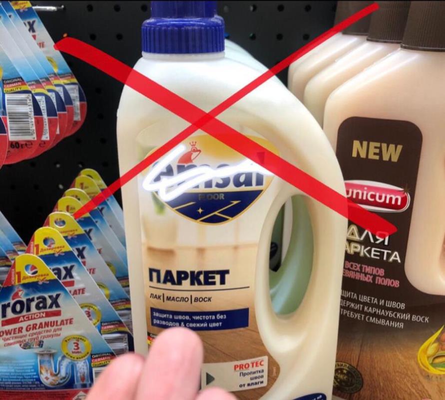 Главное – очень аккуратно выбирать средства для мытья и по уходу, пор мере возможности не приобретать средства, продающиеся в гипермаркетах, они более рассчитаны на синтетические покрытия и могут нанести урон деревянным полам. Никаких уайт-спиритов и растворителей, способных размыть или смыть полностью защитный слой паркетных полов. Поверьте, случаи применения таких средств клининговыми компаниями имели и место, и печальные последствия. То, что производят корпорации-гиганты, не всегда полезно, равно как и применение средств со строительного рынка.