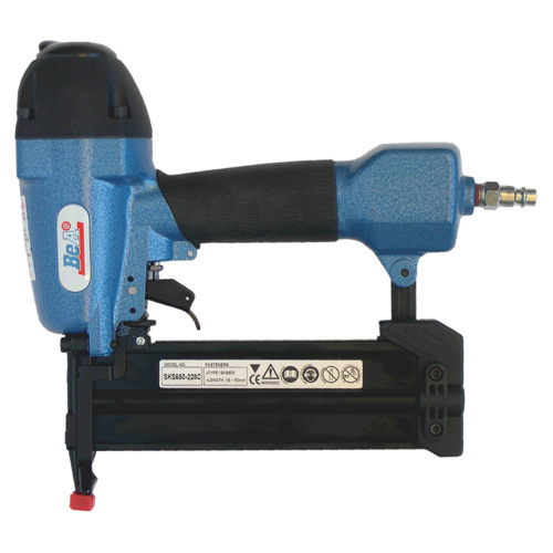Для них усилие, необходимое чтобы того, чтобы вогнать гвоздь в подоснову пола, формируется давлением воздуха. Это давление воздуха обеспечивается компрессором. Большой объем воздуха всасывается компрессором, сжимается и высвобождается в короткий промежуток времени, чтобы сформировать большую мощность. Компрессор и ручной инструмент связаны друг с другом специальными шлангами. Эти приборы по действию аналогичны духовому ружью.