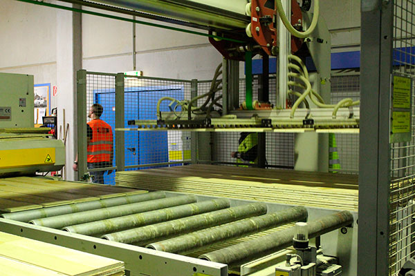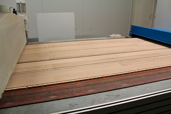 При нарезке по контуру ламелей под нагревом наносится воск по технологии Hydrostop, что обеспечивает необходимую влагостойкость продукции. В выходные дни все узлы оборудования, связанные с применением клея и лака, промываются.