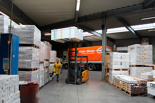А теперь попытаемся несколько подробнее познакомиться с первым из увиденных нами производственных комплексов компании – с заводом в Вайце. Территория завода, постепенно несколько меняя свои контуры и прирастая площадью, принадлежит компании с 1883 г. Здесь расположен склад продукции дневного оборота на 250 тыс. м² паркета и на 180 тыс. погонных метров плинтуса. Высота складского корпуса – 10-12 м и в некоторых частях поперечного разреза доходит до 20 м.