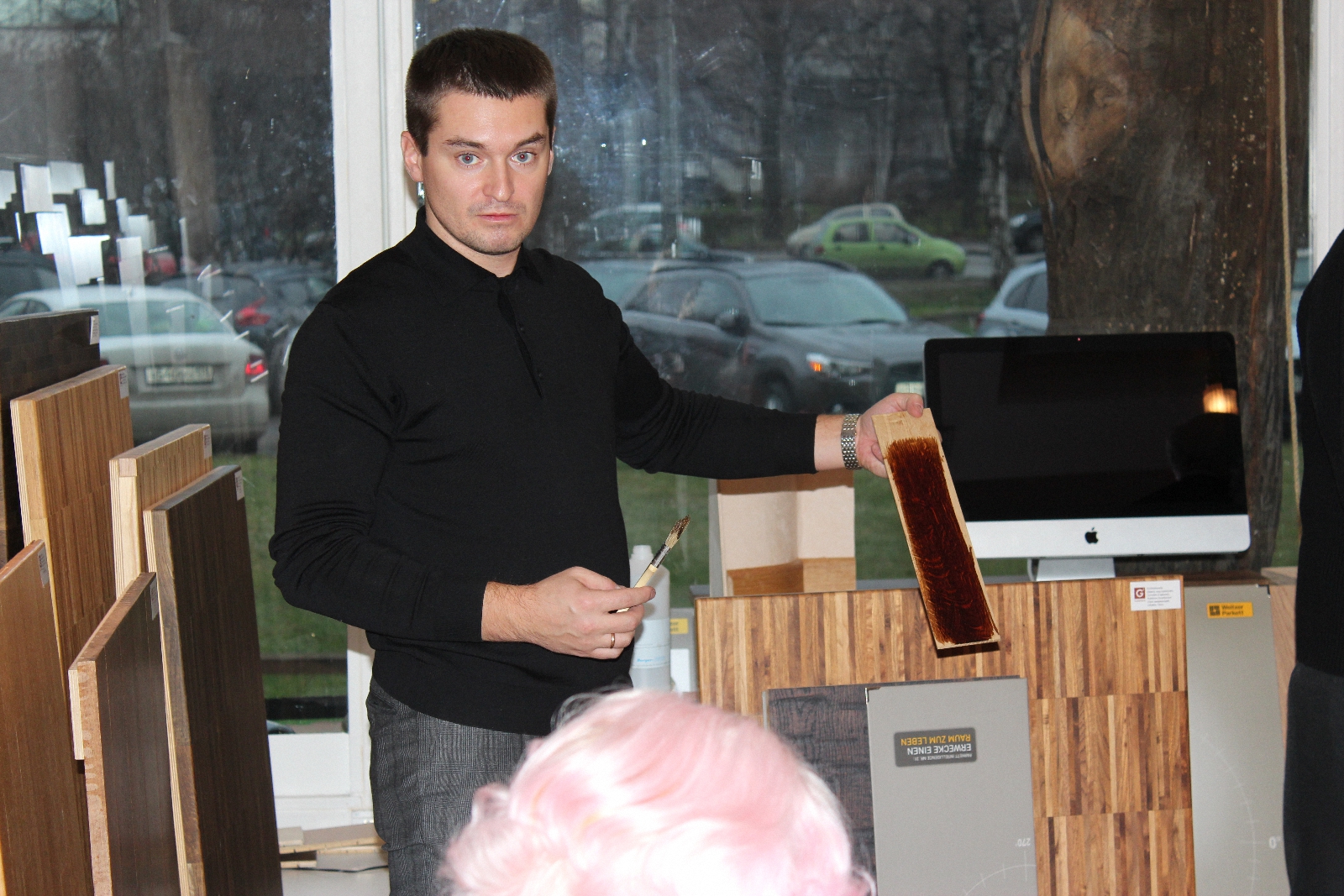 Процесс обсуждения вопросов и пожеланий слушателей семинара сопровождался представлением специалистами компании «ВЕРНИСАЖ» материалов напольных покрытий и продуктов паркетной химии от лучших европейских производителей, предлагаемых компанией, а также рассказом о некоторых современных технологиях, имеющих прямое отношение к тематике семинара, в том числе о средствах и методах, применяемых для локального ремонта и реставрации защитных покрытий деревянных полов.