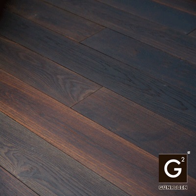 - Во-первых, это традиционные европейские породы древесины, их преимущество именно в традиционности и относительно невысокой цене, и они не выходят из моды. Недостаток, пожалуй, в ограниченной цветовой гамме и, как следствие, в предсказуемых интерьерах. В данном случае выручают дополнительные методики механической обработки – браширование, тес, строжка и искусственное старение, плюс тонировка, патинирование и даже копчение. Подобные инновации дают очень интересные дизайнерские решения, недостаток их – относительно непродолжительный срок службы декоративного покрытия, буквально до первой шлифовки, и, как следствие, практическое отсутствие возможности реставрации для восстановления первоначального внешнего вида. Более того, рано или поздно в местах, подвергающихся более интенсивному ежедневному износу, начинают вытаптываться дорожки.