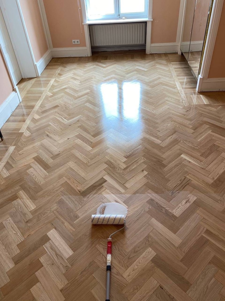 Прежде всего, такое покрытие для нас более предсказуемо. Некоторые считают, что укладка паркет с заводским покрытием будет дешевле, чем ручная работа. Но если мы возьмем качественный паркет с проверенным защитным покрытием ультрафиолетового отверждения от хорошего производителя, это всегда будет продукт заведомо недешевый и даже достаточно дорогой, по стоимости более или менее соизмеримый с выполнением финишной отделки на объекте. При покрытии паркета лаком или маслом на объекте мы можем регулировать толщину нанесения защитного слоя и, исходя из стоимости, выбрать, какой нам необходим лак, масло или масло-воск – выбрать в том числе по стоимости, по функциональности. И мы всегда будем достоверно знать, каким лаком или маслом покрыт паркет, чем мы можем его обновить при необходимости.