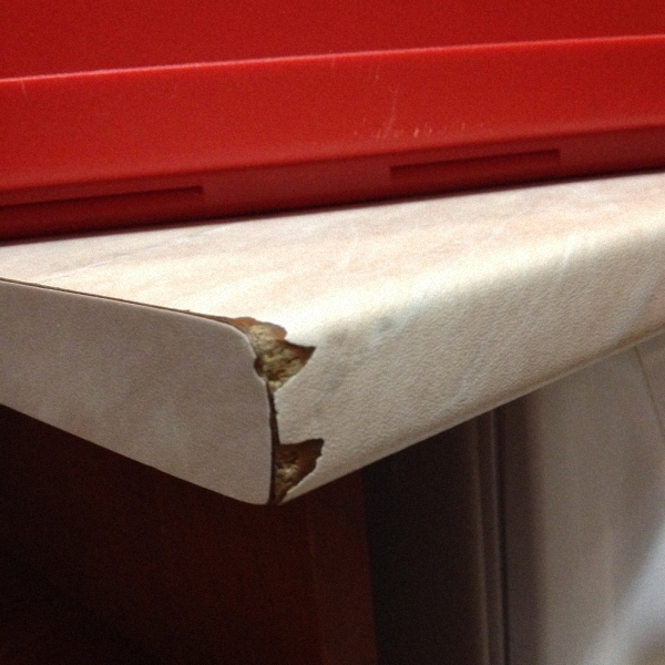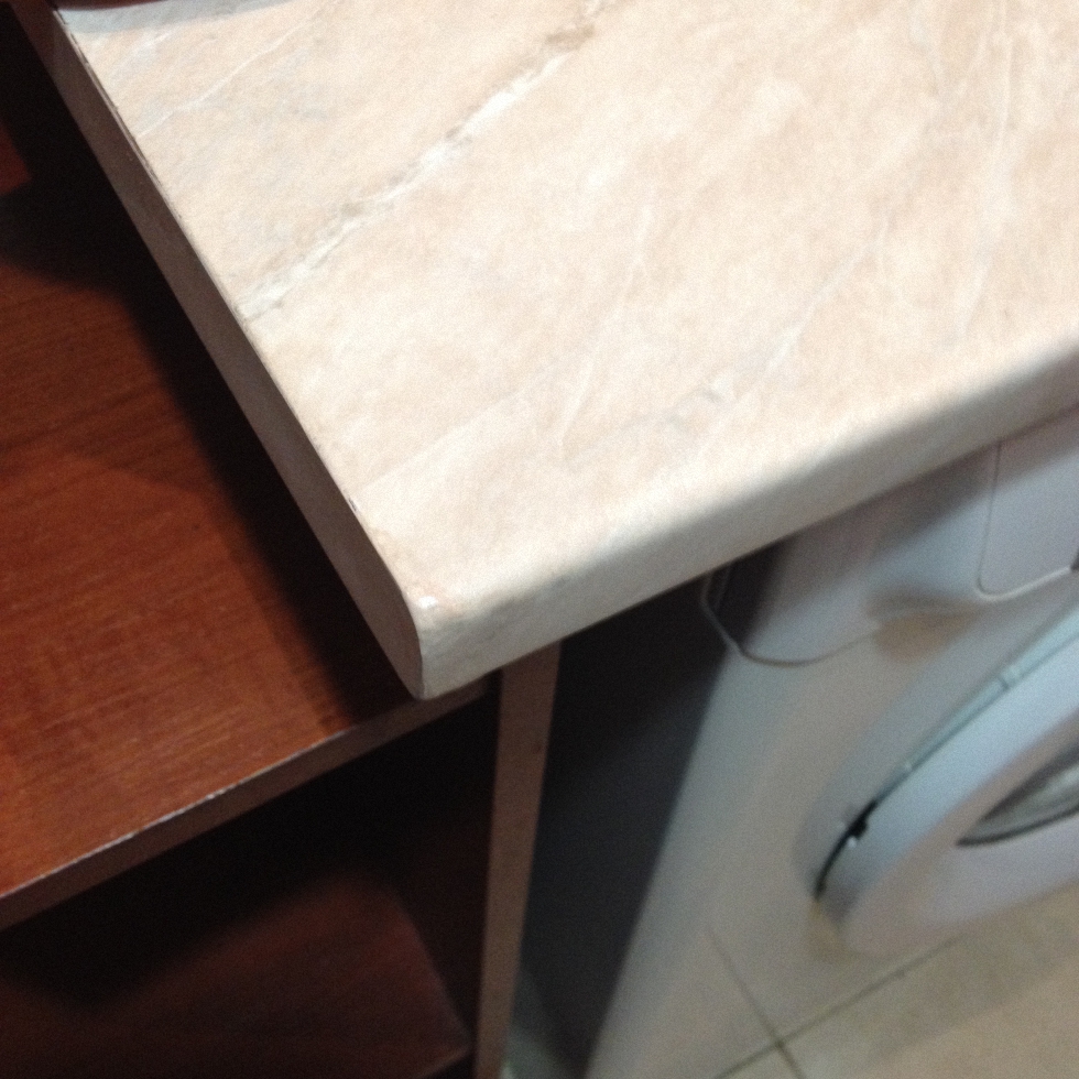 Года два назад я делал ремонт на кухне своими силами. Под конец ремонта, собирая мебель, я уронил столешницу, в результате падения появилась трещина на ребре.