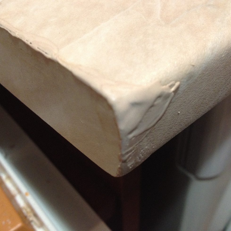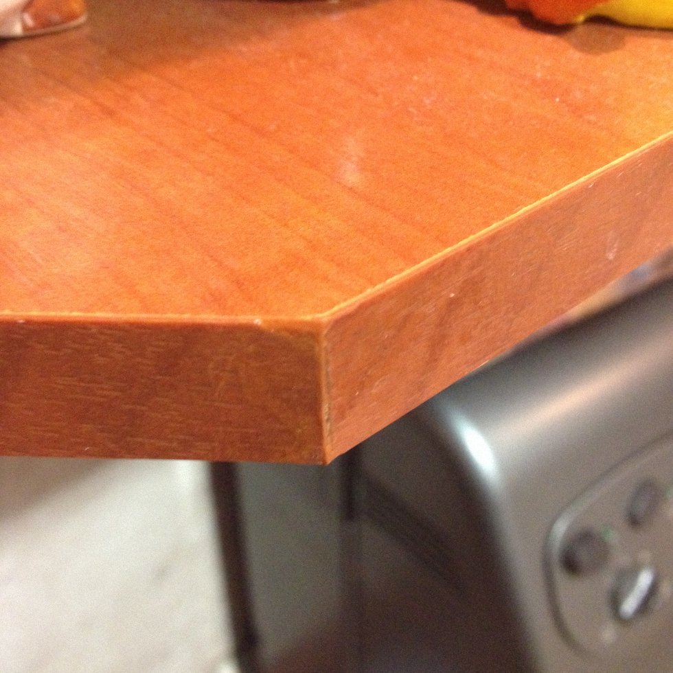 Поскольку сроки окончания ремонта поджимали, я решил оставить это повреждение, как есть. Но со временем в эту щель проникала влага, отваливались мелкие кусочки покрытия, и она становилась все более заметной и начала раздражать. Появлялось желание поменять столешницу.Прикинув стоимость и трудозатраты на разборку-сборку и напиловку в необходимый мне размер (а ведь это еще и время), я решил попробовать обойтись реставрацией.