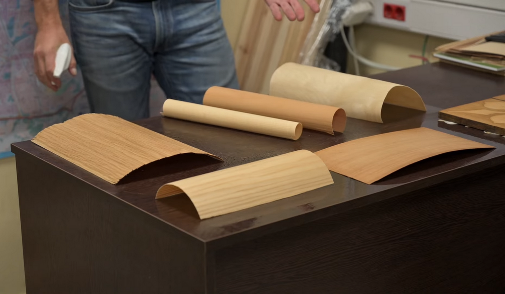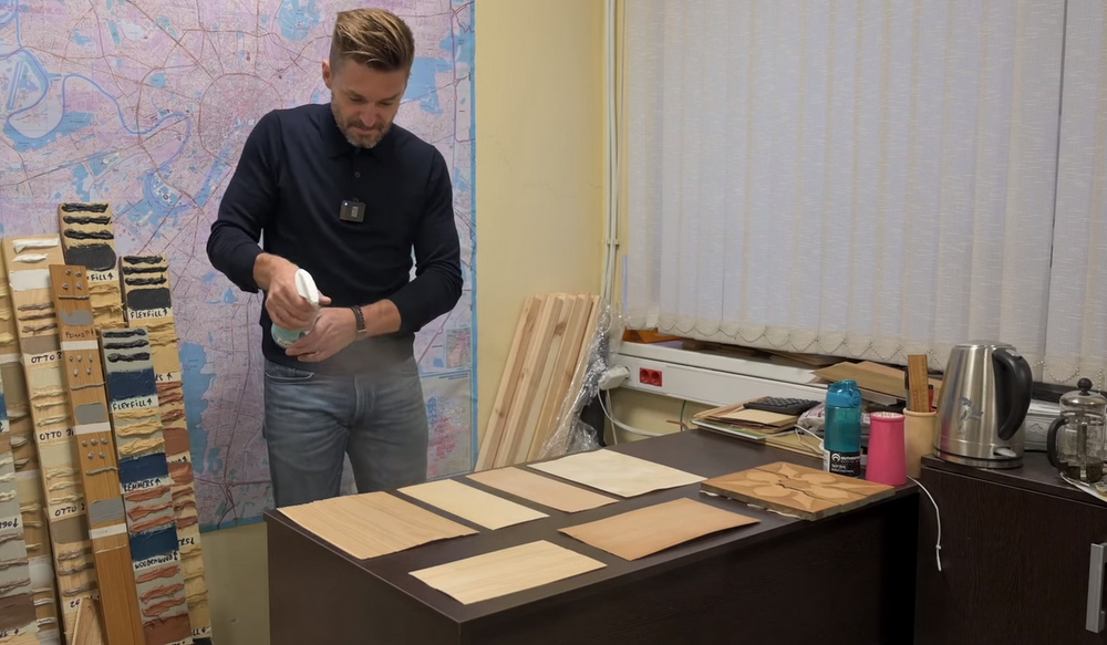 В ходе эксперимента посмотрим, как именно в сравнении каждая из пород дерева будет реагировать просто на влагу. Представленные образцы древесины – это шпон, то есть вообще целиковый спил.