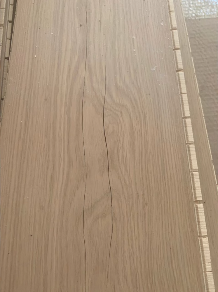 Еще один момент: если вы покупаете доску с большими зашпаклеванными сучками, и она тоже не защищена пленочным покрытием, а под натуральным маслом, есть вероятность того, что и сучок может или растрескаться, или вывалиться вообще из доски. Это единичные случаи, но они тоже бывают. Поэтому я просто хочу предупредить, чтобы клиент был адекватен в своем выборе.