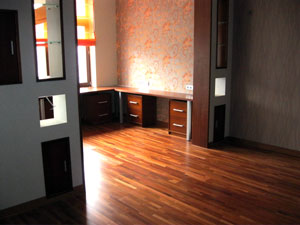 Ну и наконец, самый популярный вид паркета – паркетная доска. Это своего рода заменитель паркета, так как представляет собой трехслойную конструкцию, где нижние два – переклеенные в разных направлениях (для увеличения стабильности поведения) слои из дешевых пород дерева, а верхний лицевой слой – 4 мм – из ценной породы. Паркетная доска делится на трехполосную, двухполосную и однополосную.