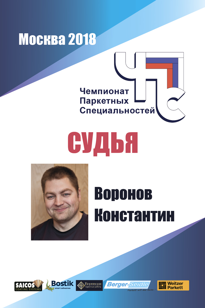 Кирик Андрей - Главный Судья Чемпионата Паркетных Специальностей 2018 - Представитель компании ВЕРНИСАЖ - организатора Чемпионата Паркетных Специальностей 2018