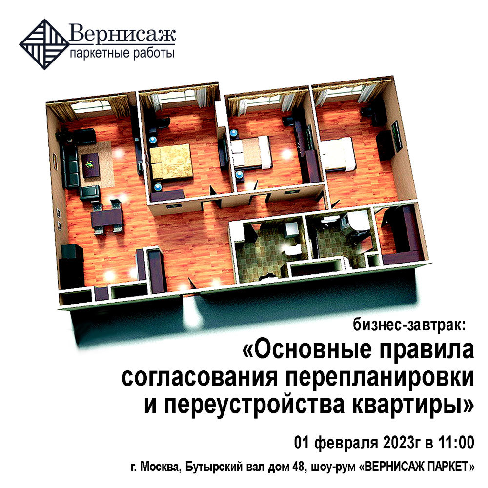 Уважаемые клиенты и партнеры! Приглашаем архитекторов и дизайнеров на бизнес-завтрак «Основные правила согласования перепланировки и переустройства квартиры», который пройдет в московском салоне компании «Вернисаж».