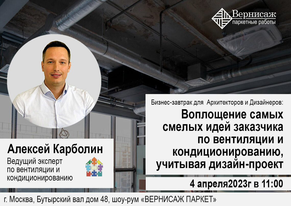 Уважаемые партнеры! В рамках отраслевого бизнес-клуба «Строим Дом» 4 апреля в 11:00 приглашаем архитекторов на бизнес-завтрак «Воплощение самых смелых идей заказчика по вентиляции и кондиционированию, учитывая дизайн-проект».