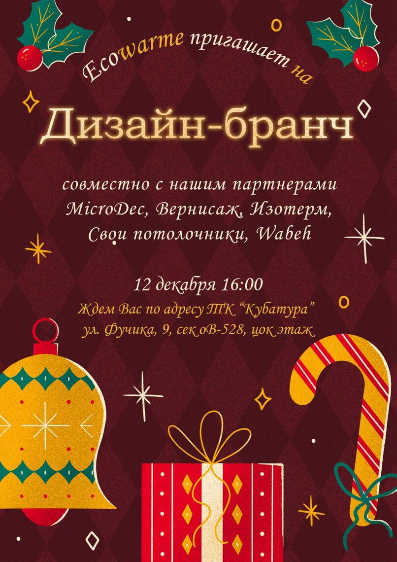Дорогие партнеры из Санкт-Петербурга! Приглашаем вас на предновогодний бранч – это уникальное мероприятие, где искусство дизайна встречается с современными технологиями!
