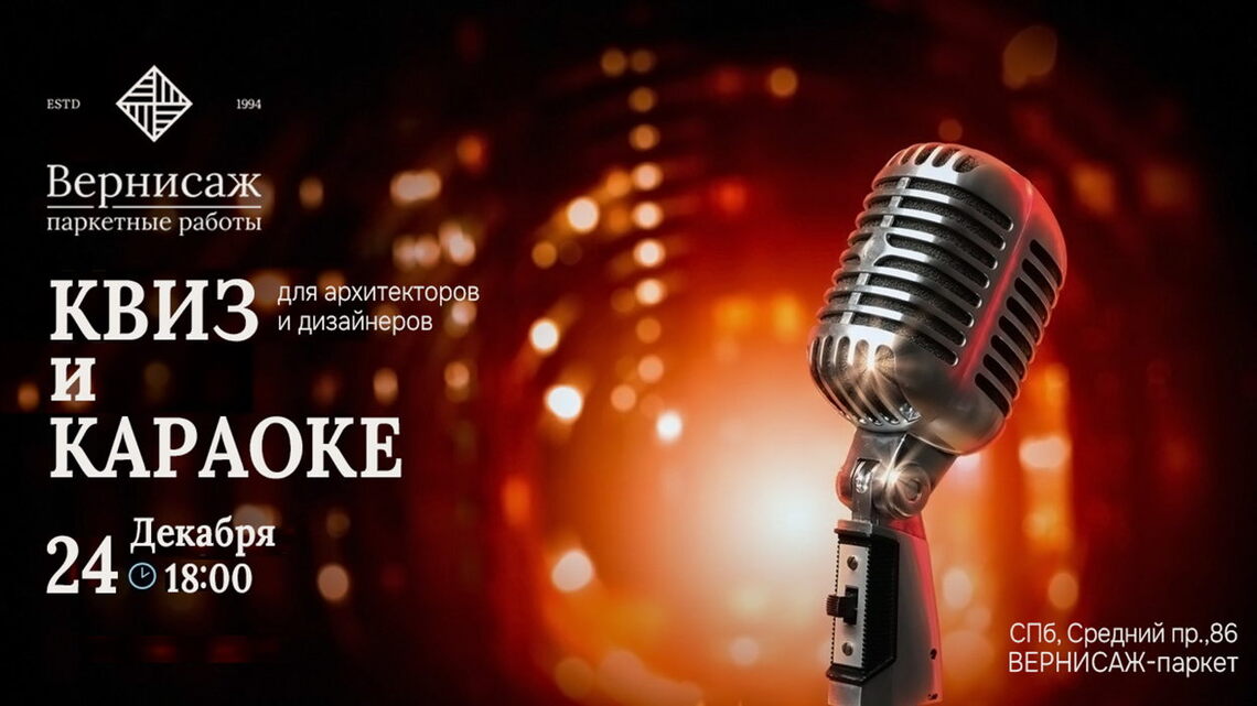 Уважаемые партнеры! Приглашаем дизайнеров и архитекторов 24 декабря провести вечер в компании творческих людей, принять участие в весёлом квизе и исполнить любимые песни в караоке.