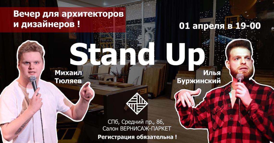 Уважаемые партнеры! Приглашаем архитекторов и дизайнеров хорошо провести время в компании «Вернисаж» и приглашенных гостей – Ильи Буржинского и Михаила Тюляева. В программе вечера: Stand Up, фуршет и вино.