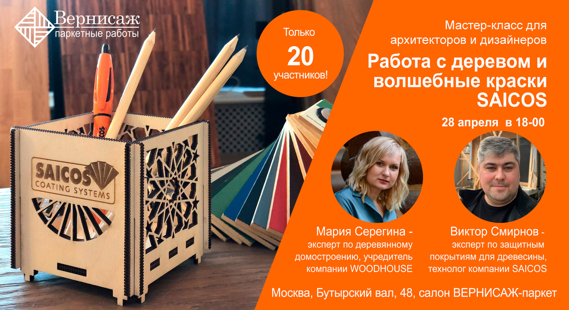 Компания «Вернисаж» приглашает архитекторов и дизайнеров на мастер-класс «Работа с деревом и волшебные краски Saicos».