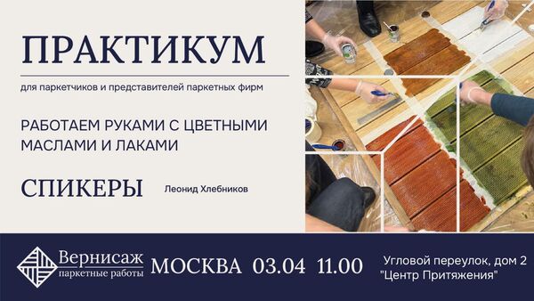 Уважаемые партнеры! Компания «Вернисаж» приглашает всех специалистов, работающих с натуральной древесиной, на семинар-практикум «Работаем руками с цветными маслами и лаками».