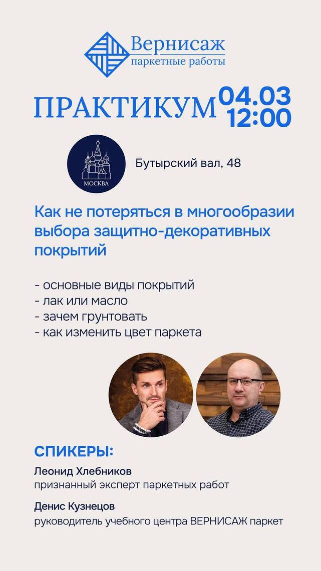 Уважаемые клиенты и партнеры! Приглашаем мастеров-паркетчиков на практикум «Как не потеряться в многообразии выбора защитно-декоративных покрытий».