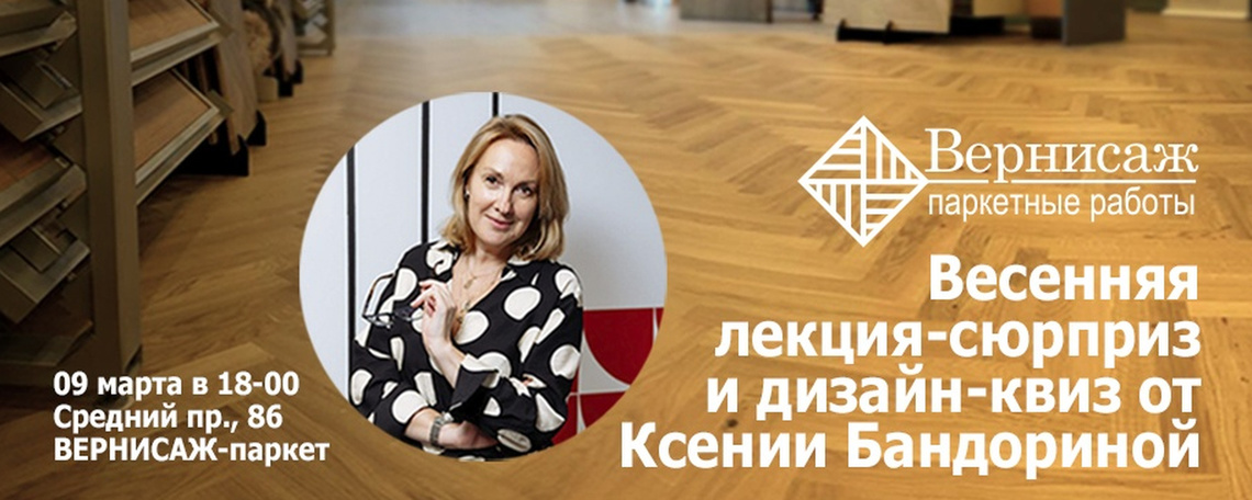 Уважаемые клиенты и партнеры! Компания «Вернисаж» приглашает архитекторов и дизайнеров в новое пространство на весеннюю лекцию-сюрприз и дизайн-квиз от Ксении Бандориной!