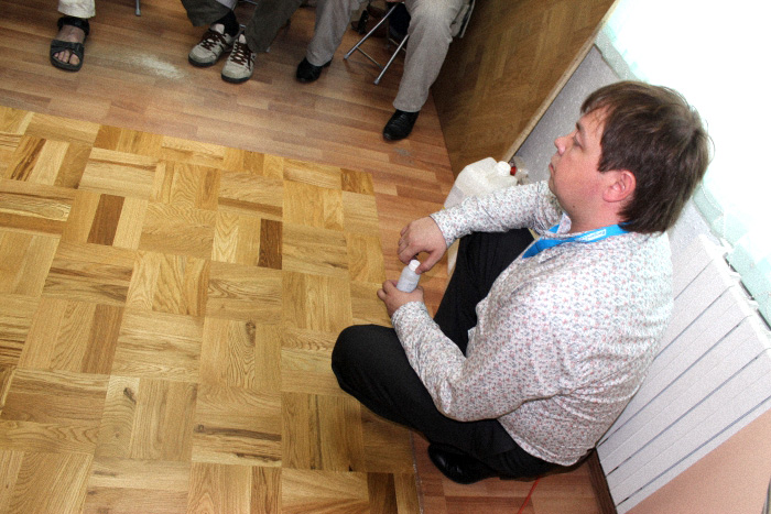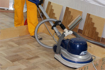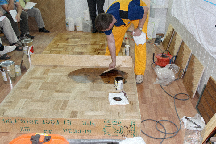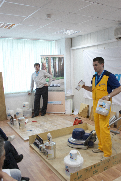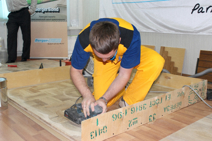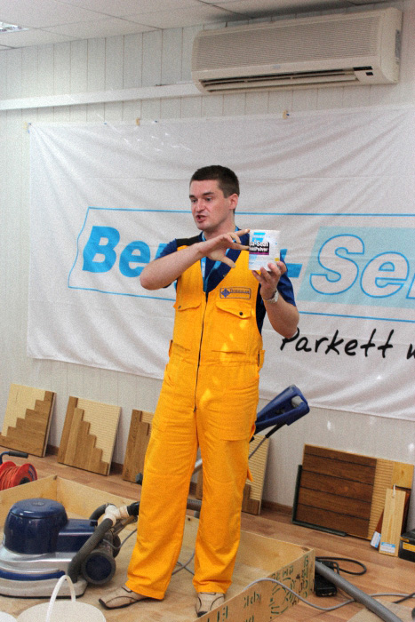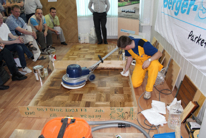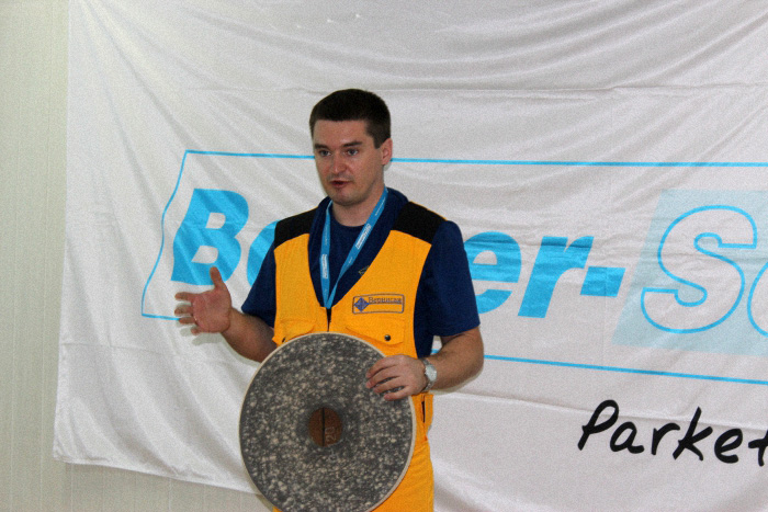 Затем в ходе семинара приступили непосредственно к процессу подготовки паркетного пола. При проведении работ поясняются особенности используемого абразива