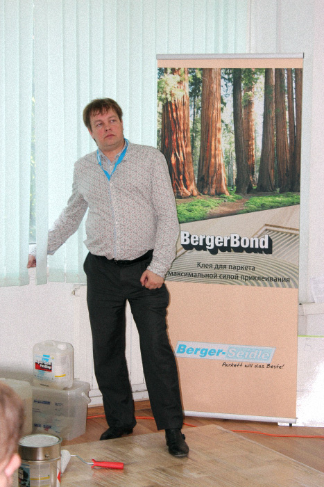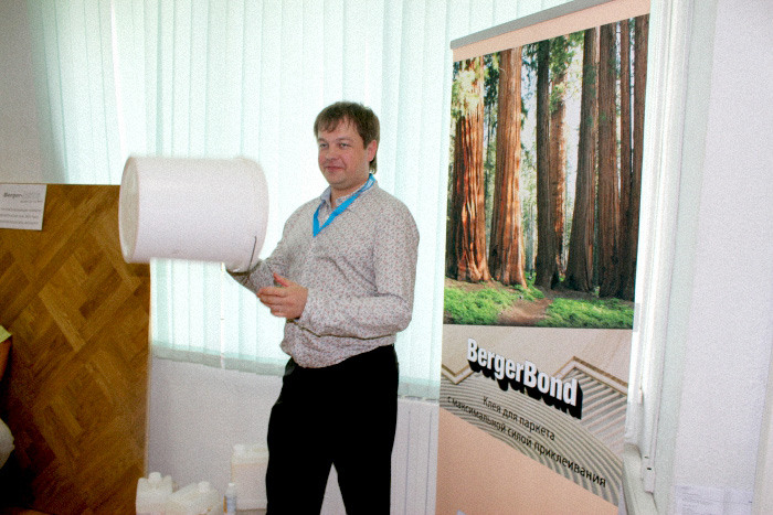 С докладом «Тонированные и бесцветные масла Berger-Seidle, особенности применения и уход» выступил Леонид Хлебников. Собравшиеся с большим интересом слушают докладчика.