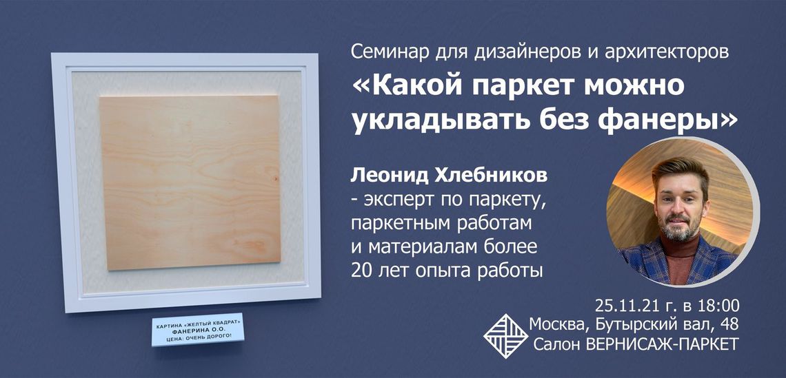 Компания «Вернисаж» приглашает архитекторов и дизайнеров на семинар «Какой паркет можно укладывать без фанеры» в Москве.