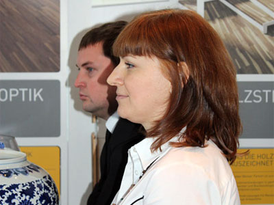 Еще одним направлением обсуждения стало рассмотрение проблем художественного оформления интерьеров, их стилевой привязки, в том числе благодаря выбору пород древесины и рисунков замощения для деревянных полов, использованию таких элементов художественного украшения, как розетки, бордюры, угловые элементы, модули – декоры, применению тонирования и патинирования напольных покрытий, методов их искусственного старения, выбора материалов и необходимых характеристик защитных покрытий. В дополнение ко всему этому обсуждались вопросы создания паркетных гарнитуров из разных элементов украшения, связанных в той или иной степени общностью пород и стилистических символов и признаков. Рассмотрение проблем создания ансамблевых решений в интерьерах, использования по совпадению или контрасту цветовых и тоновых решений, украшения потолков, стеновых панелей, лепнины, резьбы дверей и мебели, отделки интерьеров тканями, выбора предметов меблировки позволило, наконец, перейти к обсуждению некоторых тенденций в развитии напольных покрытий по итогам анализа современного состояния отрасли и проходивших в самом начале этого года выставкам DOMOTEX в Ганновере и BAU в Мюнхене (Германия).