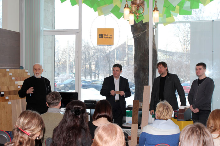 В конце семинара по уже ставшей доброй традиции среди присутствовавших архитекторов и дизайнеров состоялся розыгрыш БЕСПЛАТНОЙ поездки на завод Weitzer Parkett, которая состоится в апреле 2013 года. Победителем стала представитель мастерской интерьера «Золотая середина» Перова Ольга Владимировна.